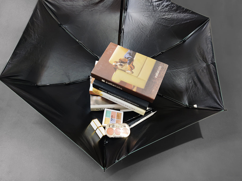 If the umbrella is sturdy enough, the open cover makes a great storage space for notebooks, binders, and other school materials.