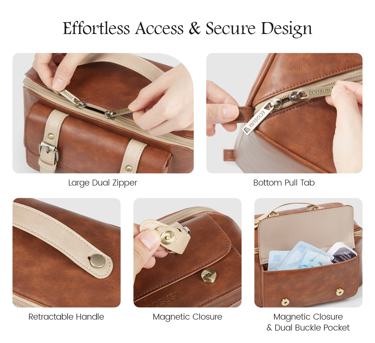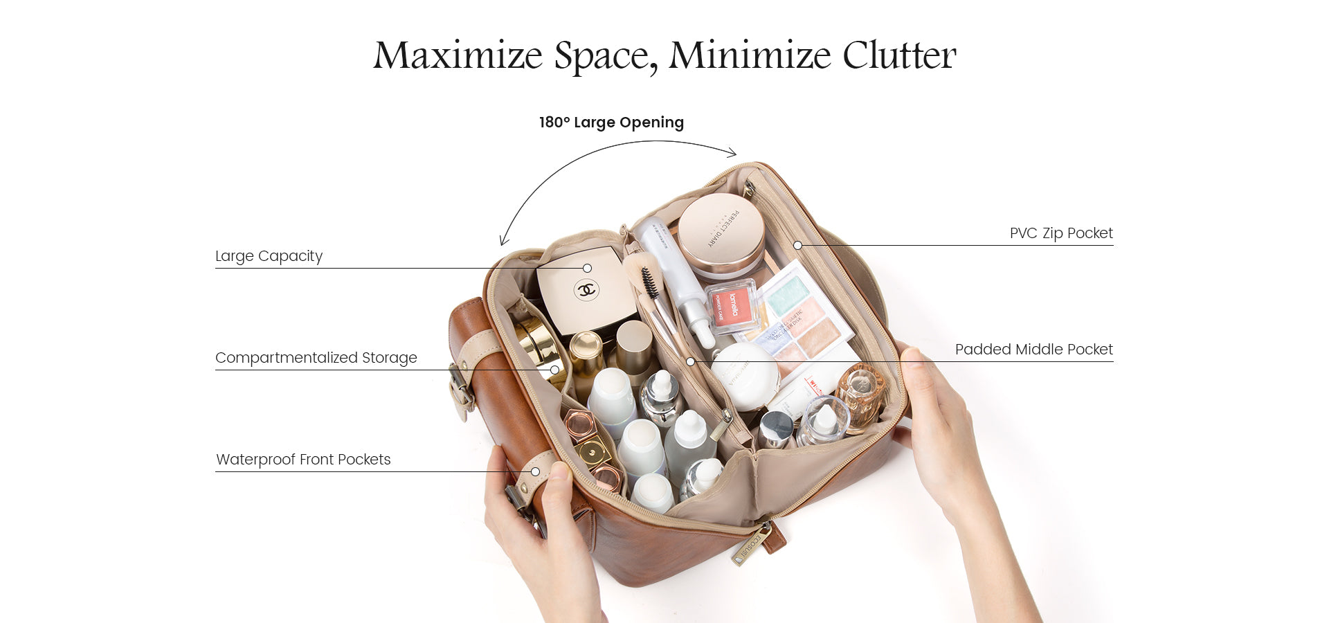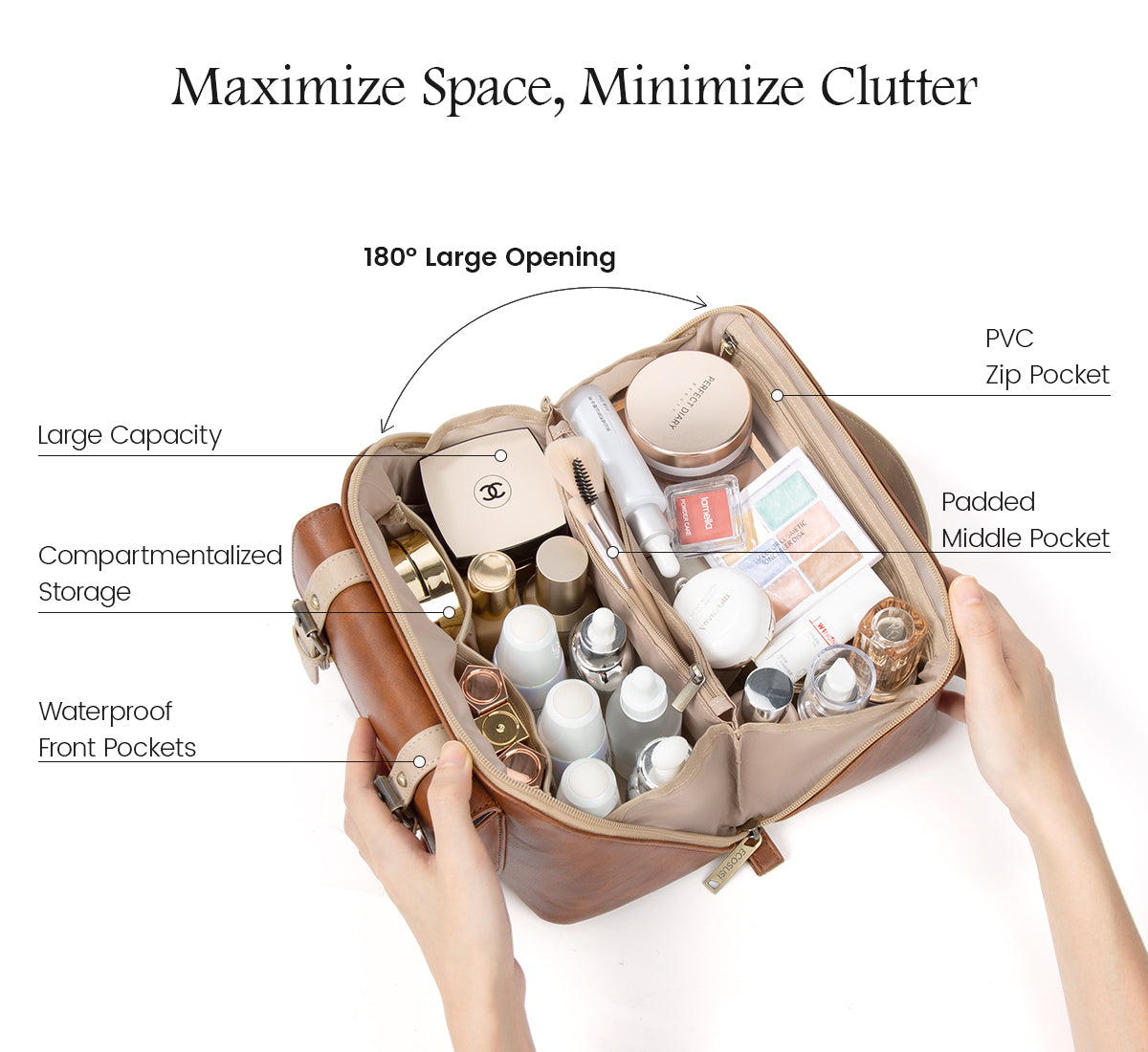 Organized Storage: Seven pockets to neatly arrange your cosmetics and travel essentials.