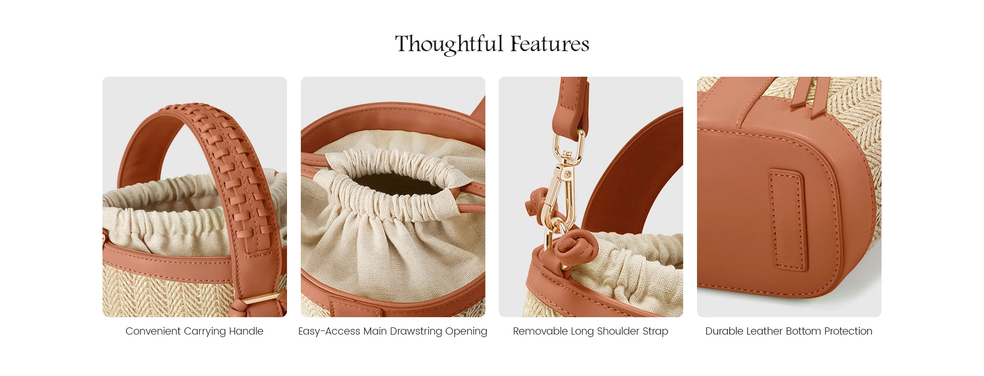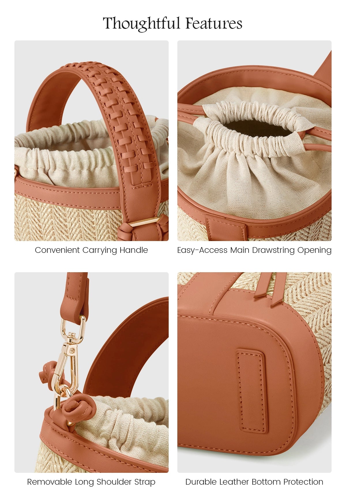 - Natural Raffia & Faux Leather: Eco-chic and durable