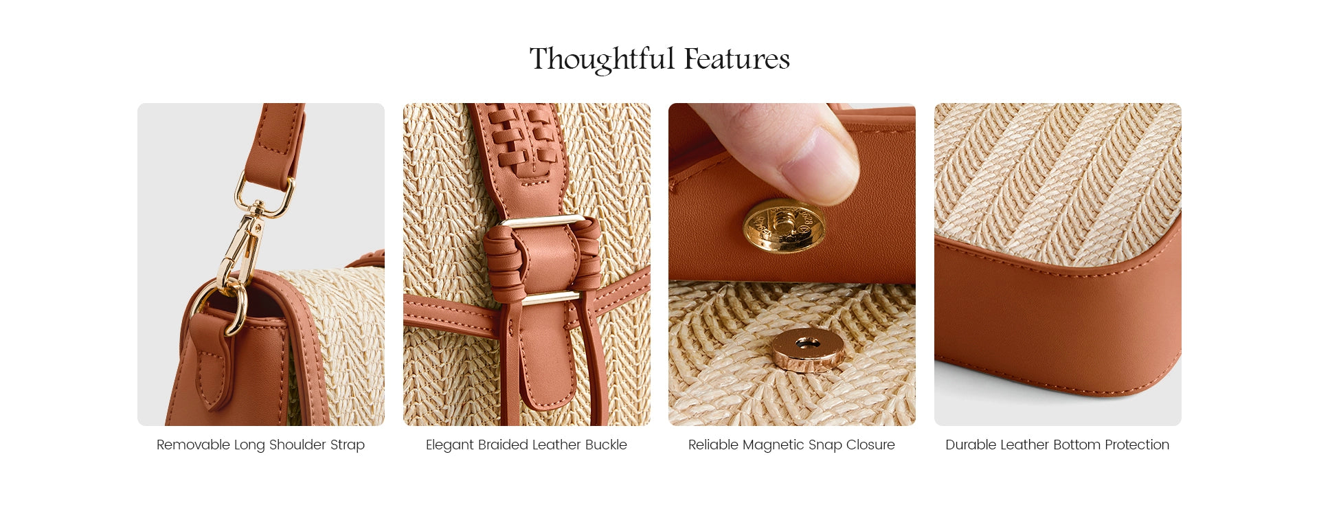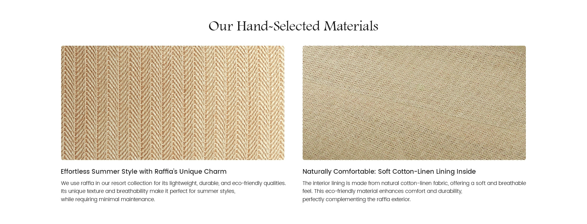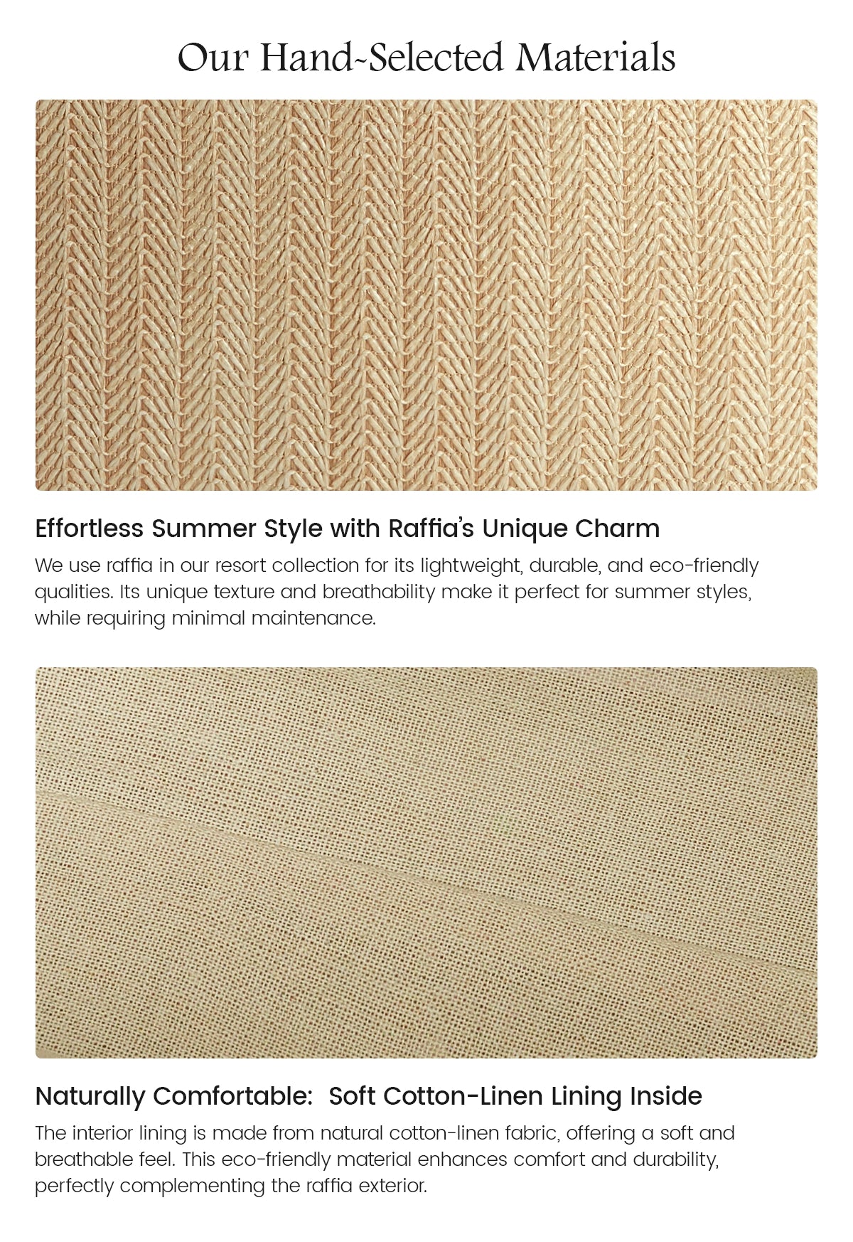 - Natural Raffia & Faux Leather: Eco-friendly and chic