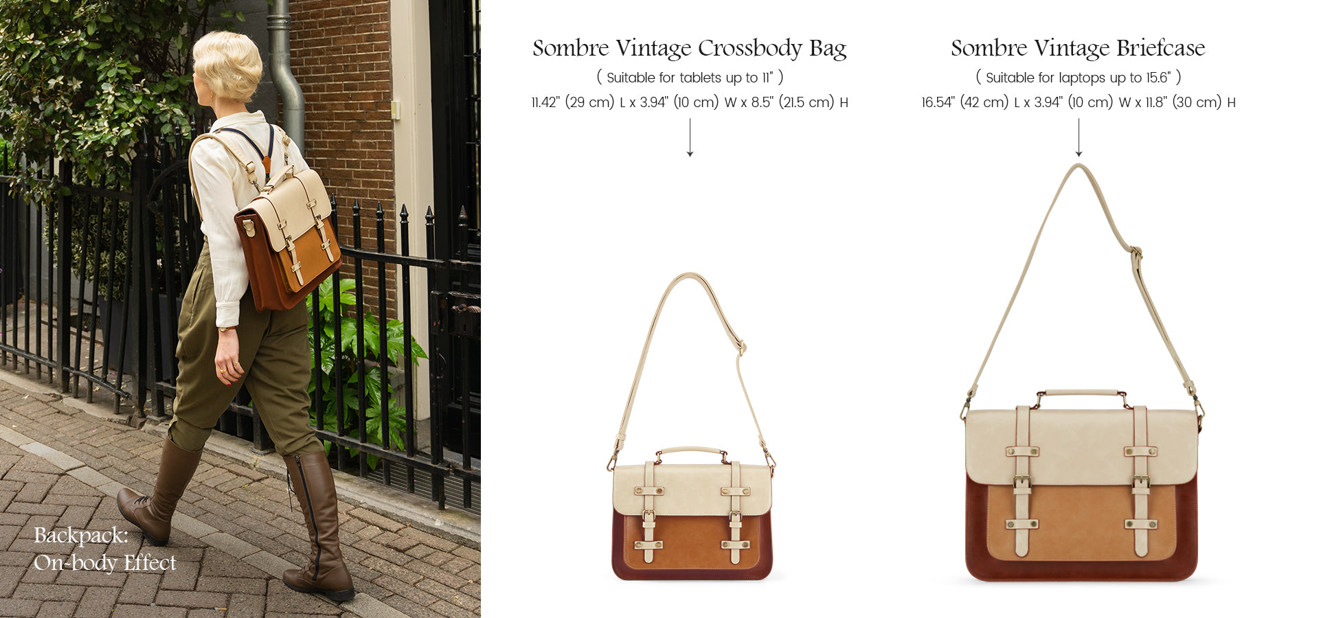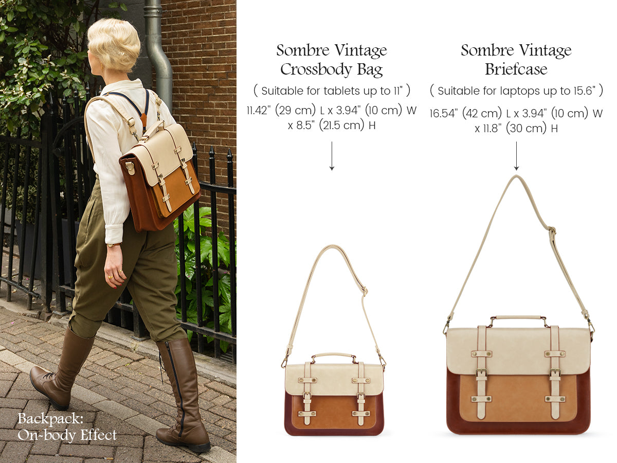The Sombre Vintage Briefcase epitomizes Ecosusi's vision of style and functionality. Timeless and refined, this vintage bag for women is crafted in eye-catching contrasting colors with vegan materials. It features gold-tone hardware that embellishes its outlook with an elegant allure. With detachable and adjustable shoulder straps, this luxury vegan bag for women can be easily converted into a shoulder bag, backpack, or handbag.